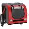 Remorque de vélo pour animaux de compagnie rouge et grisCette remorque de vélo pour animaux de compagnie pratique est un excellent complément à la journée de votre animal de compagnie, lui permettant de profiter d'un voyage plus confortable. Cadre durable : le fer est un matériau solide et dur. Il est très apprécié dans la construction industrielle et la fabrication de meubles. Avec un cadre en fer, la remorque de vélo est robuste et fiable, ce qui vous permet de rouler en toute sécurité sur la route.Remorque de vélo confortable : cette remorque pour vélo est fabriquée en tissu oxford et comprend une housse en PVC pour protéger votre animal de compagnie de la bruine. De plus, le fond de la remorque est équipé d'une planche de support de charge noire pour un espace confortable.Conception pratique : Les portes avant et arrière à fermeture éclair facilitent l'entrée et la sortie. Les fenêtres en filet et le toit à fermeture éclair permettent à l'air de circuler à l'intérieur et de garder votre animal de compagnie au frais pendant le voyage.Conduite en toute sécurité : la remorque de vélo dispose de deux grandes roues qui permettent un déplacement en douceur et en toute sécurité sur différents terrains et les réflecteurs à l'extérieur offrent une visibilité dans l'obscurité, et le drapeau peut augmenter la sécurité routière.Nombreuses applications : parfaite pour transporter les petits chiens et les animaux de compagnie, cette remorque de vélo pour animaux de compagnie peut être attachée à votre vélo facilement. Elle peut également être utilisée pour transporter des courses, d'équipement de camping, des articles de sport ou tout autre objet que vous souhaitez emporter avec vous !