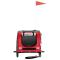 Remorque de vélo pour animaux de compagnie rouge et grisCette remorque de vélo pour animaux de compagnie pratique est un excellent complément à la journée de votre animal de compagnie, lui permettant de profiter d'un voyage plus confortable. Cadre durable : le fer est un matériau solide et dur. Il est très apprécié dans la construction industrielle et la fabrication de meubles. Avec un cadre en fer, la remorque de vélo est robuste et fiable, ce qui vous permet de rouler en toute sécurité sur la route.Remorque de vélo confortable : cette remorque pour vélo est fabriquée en tissu oxford et comprend une housse en PVC pour protéger votre animal de compagnie de la bruine. De plus, le fond de la remorque est équipé d'une planche de support de charge noire pour un espace confortable.Conception pratique : Les portes avant et arrière à fermeture éclair facilitent l'entrée et la sortie. Les fenêtres en filet et le toit à fermeture éclair permettent à l'air de circuler à l'intérieur et de garder votre animal de compagnie au frais pendant le voyage.Conduite en toute sécurité : la remorque de vélo dispose de deux grandes roues qui permettent un déplacement en douceur et en toute sécurité sur différents terrains et les réflecteurs à l'extérieur offrent une visibilité dans l'obscurité, et le drapeau peut augmenter la sécurité routière.Nombreuses applications : parfaite pour transporter les petits chiens et les animaux de compagnie, cette remorque de vélo pour animaux de compagnie peut être attachée à votre vélo facilement. Elle peut également être utilisée pour transporter des courses, d'équipement de camping, des articles de sport ou tout autre objet que vous souhaitez emporter avec vous !