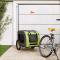 Remorque de vélo pour animaux de compagnie vert et grisCette remorque de vélo pour chien pratique est un excellent complément à la journée de votre animal de compagnie, lui permettant de profiter d'un voyage plus confortable. Cadre durable : le fer est un matériau solide et dur. Il est très apprécié dans la construction industrielle et la fabrication de meubles. Avec un cadre en fer, la remorque de vélo est robuste et fiable, ce qui vous permet de rouler en toute sécurité sur la route. Remorque de vélo confortable : cette remorque pour vélo est fabriquée en tissu oxford et comprend une housse en PVC pour protéger votre animal de compagnie de la bruine. De plus, le fond de la remorque est équipé d'une planche de support de charge noire pour un espace confortable. Conception pratique : Les portes avant et arrière à fermeture éclair facilitent l'entrée et la sortie. Les fenêtres en filet et le toit à fermeture éclair permettent à l'air de circuler à l'intérieur et de garder votre animal de compagnie au frais pendant le voyage.Conduite en toute sécurité : la remorque de vélo dispose de deux grandes roues qui permettent un déplacement en douceur et en toute sécurité sur différents terrains et les réflecteurs à l'extérieur offrent une visibilité dans l'obscurité, et le drapeau peut augmenter la sécurité routière. Nombreuses applications : parfaite pour transporter les petits chiens et les animaux de compagnie, cette remorque de vélo pour animaux de compagnie peut être attachée à votre vélo facilement. Elle peut également être utilisée pour transporter des courses, d'équipement de camping, des articles de sport ou tout autre objet que vous souhaitez emporter avec vous !