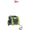 Remorque de vélo pour animaux de compagnie vert et grisCette remorque de vélo pour animaux de compagnie pratique est un excellent complément à la journée de votre animal de compagnie, lui permettant de profiter d'un voyage plus confortable. Cadre durable : le fer est un matériau solide et dur. Il est très apprécié dans la construction industrielle et la fabrication de meubles. Avec un cadre en fer, la remorque de vélo est robuste et fiable, ce qui vous permet de rouler en toute sécurité sur la route. Remorque de vélo confortable : cette remorque pour vélo est fabriquée en tissu oxford et comprend une housse en PVC pour protéger votre animal de compagnie de la bruine. De plus, le fond de la remorque est équipé d'une planche de support de charge noire pour un espace confortable. Conception pratique : Les portes avant et arrière à fermeture éclair facilitent l'entrée et la sortie. Les fenêtres en filet et le toit à fermeture éclair permettent à l'air de circuler à l'intérieur et de garder votre animal de compagnie au frais pendant le voyage. Conduite en toute sécurité : la remorque de vélo dispose de deux grandes roues qui permettent un déplacement en douceur et en toute sécurité sur différents terrains et les réflecteurs à l'extérieur offrent une visibilité dans l'obscurité, et le drapeau peut augmenter la sécurité routière. Nombreuses applications : parfaite pour transporter les petits chiens et les animaux de compagnie, cette remorque de vélo pour animaux de compagnie peut être attachée à votre vélo facilement. Elle peut également être utilisée pour transporter des courses, d'équipement de camping, des articles de sport ou tout autre objet que vous souhaitez emporter avec vous !