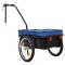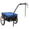 Remorque de vélo/chariot à main 155x60x83 cm acier bleuCe produit polyvalent, avec une caisse de transport, est parfait pour les trajets locaux ou les excursions longue distance. Cette remorque de vélo a une capacité de charge maximale de 50 kg. Elle est conçue avec un système d'accouplement à billes pour une fixation facile au vélo. Avec 2 poignées sur la barre d'attelage, cette remorque de marchandises peut également être utilisée comme chariot à main avec une capacité de charge maximale de 70 kg. Le support pliable vous permet de le stationner en toute sécurité sans avoir à vous soucier de son basculement. Grâce à la construction à cadre robuste en acier avec caisse de transport en plastique résistant aux chocs, cette remorque / ce wagon à main est très robuste et durable. La couverture en nylon amovible incluse est résistante aux intempéries et imperméable. Les réflecteurs colorés haute visibilité ont été ajoutés pour plus de sécurité. La remorque de cargaison de vélo est facile à assembler. Il peut y avoir des exigences légales locales en matière d'éclairage, de réflecteur, etc. Suivez les exigences locales et légales.