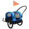 Remorque de vélo pour chiens et poussette 2-en-1 bleu et noirCette remorque de vélo 2 en 1 pour animaux de compagnie fonctionnelle peut être facilement convertie en poussette de jogging pour animaux de compagnie ou en voiturette de vélo en quelques secondes et est parfaite pour les chiens et autres animaux de compagnie. La remorque pour animaux de compagnie a un cadre en acier robuste et est faite de tissu oxford, ce qui la rend durable et facile à entretenir. Ses fenêtres grillagées sur les deux côtés permettent une circulation d'air maximale, tandis que l'avant et l'arrière offrent une double entrée pour plus de commodité. Cette remorque de vélo pour animaux de compagnie a une suspension pour une conduite en douceur, et la roue avant peut pivoter à 360 degrés pour la promenade. Le joint rotatif de sécurité assure que la remorque reste debout si la bicyclette tombe. La remorque pour chien a un attelage à dégagement rapide pour une fixation facile à un vélo. En outre, la barre de remorquage peut être pliée pour économiser de l'espace. GPSR