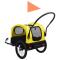 Remorque de vélo pour chiens et poussette 2-en-1 jaune et noirCette remorque de vélo 2 en 1 pour animaux de compagnie fonctionnelle peut être facilement convertie en poussette de jogging pour animaux de compagnie ou en voiturette de vélo en quelques secondes et est parfaite pour les chiens et autres animaux de compagnie. La remorque pour animaux de compagnie a un cadre en acier robuste et est faite de tissu oxford, ce qui la rend durable et facile à entretenir. Ses fenêtres grillagées sur les deux côtés permettent une circulation d'air maximale, tandis que l'avant et l'arrière offrent une double entrée pour plus de commodité. Cette remorque de vélo pour animaux de compagnie a une suspension pour une conduite en douceur, et la roue avant peut pivoter à 360 degrés pour la promenade. Le joint rotatif de sécurité assure que la remorque reste debout si la bicyclette tombe. La remorque pour chien a un attelage à dégagement rapide pour une fixation facile à un vélo. En outre, la barre de remorquage peut être pliée pour économiser de l'espace. GPSR