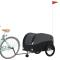 Remorque de vélo noir 45 kg ferCette remorque de vélo polyvalente et robuste sera idéale pour le transport de marchandises lourdes grâce à sa capacité de charge maximale de 45 kg. Matériau robuste : le fer est un matériau solide et dur. Il est très apprécié dans la construction industrielle et la fabrication de meubles. Fabriquée en fer, cette remorque de vélo est très robuste et durable.Conception pratique : ce chariot de vélo, d'une capacité de charge maximale de 45 kg, est parfait pour transporter des marchandises lourdes telles que des bagages, des plantes, des outils ou des provisions.Une conception réfléchie : la remorque de vélo est équipée d'une barre d'attelage qui permet de la relier facilement à un vélo. Un drapeau de sécurité est également inclus pour une meilleure visibilité.