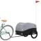 Remorque de vélo noir et gris 45 kg ferCette remorque porte-vélos polyvalente et robuste sera idéale pour le transport de marchandises lourdes grâce à sa capacité de charge maximale de 45 kg. Matériau robuste : le fer est un matériau solide et dur. Il est très apprécié dans la construction industrielle et la fabrication de meubles. Fabriquée en fer, cette remorque de vélo est très robuste et durable.Conception pratique : ce chariot de vélo, d'une capacité de charge maximale de 45 kg, est parfait pour transporter des marchandises lourdes telles que des bagages, des plantes, des outils ou des provisions.Une conception réfléchie : la remorque de vélo est équipée d'une barre d'attelage qui permet de la relier facilement à un vélo. Un drapeau de sécurité est également inclus pour une meilleure visibilité.