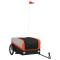 Remorque de vélo noir et orange 45 kg ferCette remorque de vélo polyvalente et robuste sera idéale pour le transport de marchandises lourdes grâce à sa capacité de charge maximale de 45 kg. Matériau robuste : le fer est un matériau solide et dur. Il est très apprécié dans la construction industrielle et la fabrication de meubles. Fabriquée en fer, cette remorque de vélo est très robuste et durable.Conception pratique : ce chariot de vélo, d'une capacité de charge maximale de 45 kg, est parfait pour transporter des marchandises lourdes telles que des bagages, des plantes, des outils ou des provisions.Une conception réfléchie : la remorque de vélo est équipée d'une barre d'attelage qui permet de la relier facilement à un vélo. Un drapeau de sécurité est également inclus pour une meilleure visibilité.