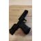 Elle est noire, en métal, sauf la crosse, comme l'original.