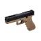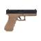Culasse Aluminium noire Frame polymère Tan Modes de tir: Semi et Full auto Chargeur gaz 26 billes Diamètre canon interne 6.03mm Longueur canon interne 90 mm Longueur totale: 210 mm Vélocité : environ 300 FPS (à la 0.20g) Compatible CO2