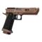 Réplique type 1911 Poignée avec grip anti-dérapant Bouton de verrouillage du chargeur surdimensionné Puit de chargeur évasé Stries marquées pour meilleure prise en main Sûreté de culasse et de détente Rail picatinny usiné sur la carcasse Marquages "Taran Tactical Innovations" (glissière) et "9 mm" (canon) Guidon fibre optique