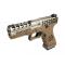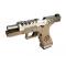Pistolet Blowback Culasse métal Silver Frame Polymère Tan Design Hexagonal Magwell Silver Canon externe silver Canon externe fileté pour installer un tracer ou un silencieux Culasse allégé améliorant le cycle Energie: 0.95 joules Capacité:27 billes Canon interne: 93 mm Longueur: Totale 200 mm Hauteur: 134 mm Mires en fibre optique