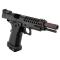 Le canon plus long favorise une meilleure stabilisation de la bille avant la sortie du tube, ce qui se traduit par des groupements plus serrés à moyenne portée. Très appréciée dans les cercles IPSC airsoft pour la régularité de ses groupements.