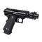 Le Galaxy G, fabriqué par WE, est une réplique de pistolet semi-automatique et entièrement automatique fabriquée dans un style inhabituel. Le pistolet est équipé d'un viseur mécanique à fibre réglable qui offre une grande visibilité. Une double détente de type Glock permet de se protéger contre les tirs incontrôlés. Le Galaxy G est équipé d'une fente de chargement compatible avec les chargeurs conçus pour les répliques de pistolets Glock de taille normale. Grâce au filetage de 14 mm du canon CCW, il est facile d'installer des suppresseurs, des cache-flammes et des traceurs BB. L'article est également équipé d'un rail Picatinny sous le canon pour les modules de lampes de poche tactiques et les désignateurs laser. L'arme de poing utilise des écailles avec une texture dentelée antidérapante sur la surface de la poignée. Un rail supplémentaire sur le dessus permet de fixer des viseurs à point rouge et d'autres dispositifs optiques. La construction solide et de haute qualité de la réplique contient des éléments (le canon) principalement en métal avec des parties moulées par injection en polymères (la carcasse). D'autres composants sont également fabriqués en polymères. A l'intérieur, WE a fourni des pièces de qualité qui garantissent une utilisation de longue durée et la précision de chaque tir. Le Galaxy G comporte une partie mobile de la glissière et un système robuste de recul à gaz (GBB) qui imite le recul et l'action de la glissière pendant le tir. Il offre une expérience exceptionnelle et réaliste à l'utilisateur, comme s'il s'agissait d'un pistolet authentique. De plus, l'arme de poing est dotée d'un mécanisme hop-up réglable afin d'améliorer la précision et la stabilité de la balle pendant le tir. Que vous soyez un professionnel expérimenté de l'airsoft ou un nouveau venu, cette réplique est un excellent choix pour tous ceux qui recherchent une arme de poing fiable.