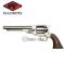 Ce modèle à simple action, avec une capacité de six coups, se distingue par sa construction solide et sa finition brillante en nickel, qui offre une excellente résistance à la corrosion tout en ajoutant une touche élégante.