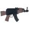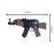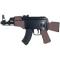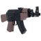Réplique airsoft Baby AK47 AEG à propulsion à piles (coup par coup ou rafale) de calibre 6 mm pour une puissance de 0.1 joule. Billes recommandées 0.12 g Hop up et culasse fixe. Mire avant et arrière fixe.