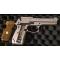 Réplique en métal du pistolet Beretta M92 FS 9 mm, version Nickel avec poignées « Wood Grip ».