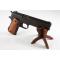 *Reproduction de pistolet, en métal et poignées en bois gravé, avec mécanisme de simulation de charge et de tir.