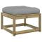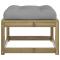 Repose-pied de jardin avec coussins bois de pin imprégnéCe repose-pied de jardin en bois sera un excellent supplément à votre jardin, terrasse ou patio pour discuter en famille et entre amis ou tout simplement profiter du beau temps. Bois imprégné : le bois de pin massif est un matériau naturel magnifique. Le bois de pin a un grain droit et les noeuds lui confèrent un aspect rustique caractéristique. L'imprégnation est un processus de conservation réalisé à l'aide d'autoclaves. Le traitement sous pression augmente la résistance à la pourriture et aux intempéries.Utilisation polyvalente : ce pouf d'extérieur peut non seulement être utilisé pour s'asseoir ou se détendre, mais il peut également être utilisé comme table basse pour contenir vos boissons, votre nourriture et d'autres décorations.Conception à lattes : la conception à lattes du pouf de jardin empêche efficacement l'eau de s'accumuler, ce qui garantit que l'assise reste sèche et exempte de tout risque de pourriture.Conception modulaire : ce pouf de terrasse présente une conception modulaire, ce qui le rend complètement flexible et facile à déplacer pour s'adapter à n'importe quel environnement. Vous pouvez le combiner avec d'autres segments modulaires disponibles dans le menu déroulant pour créer vos propres configurations d'ensemble de salon de jardin personnelles ! Bon à savoir :Pour que vos meubles d'extérieur restent beaux, nous vous recommandons de les protéger avec une housse imperméable. Maximum 110 kg par siège.