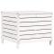 Repose-pied de jardin blanc 62x63,5x53,5 cm bois de pin massifCe repose-pied de jardin en bois sera un excellent supplément à votre jardin, terrasse ou patio pour discuter en famille et entre amis ou tout simplement profiter du beau temps. Bois de pin massif : le siège de jardin est fabriqué en bois de pin massif pour plus de robustesse et de stabilité. Le bois de pin solide est un beau matériau naturel. Le bois de pin a un grain droit et les noeuds donnent au matériau son aspect caractéristique et rustique. Utilisation polyvalente : ce pouf d'extérieur peut non seulement être utilisé pour s'asseoir ou se détendre, mais il peut également être utilisé comme table basse pour contenir vos boissons, votre nourriture, et le meuble de jardin dispose d'un espace de rangement sous le siège. Design à lattes : le design à lattes de la chaise de jardin en bois empêche l'accumulation de l'eau, ce qui permet de garder le siège au sec et d'éviter un pourrissement inutile. Design modulaire : le repose-pieds sectionnel est flexible et facile à déplacer. Vous pouvez le combiner avec d'autres segments modulaires disponibles dans le menu déroulant pour créer vos propres configurations de salon de jardin ! Bon à savoir : Pour que vos meubles d'extérieur restent beaux, nous vous recommandons de les protéger avec une housse imperméable. Maximum 110 kg par siège. ,
