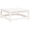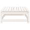 Repose-pied de jardin blanc 70x70x30 cm bois de pin massifCe repose-pied de jardin en bois sera un excellent supplément à votre jardin, terrasse ou patio pour discuter en famille et entre amis ou tout simplement profiter du beau temps. Bois de pin massif : le bois de pin massif est un matériau naturel magnifique. Le bois de pin a un grain droit et les noeuds donnent au matériau son aspect caractéristique et rustique. Fabriqué en bois de pin massif, ce repose-pieds d'extérieur est durable et stable. Utilisation polyvalente : ce pouf d'extérieur peut non seulement être utilisé pour s'asseoir ou se détendre, mais il peut également être utilisé comme table basse pour contenir vos boissons, votre nourriture et d'autres décorations. Conception à lattes : la conception à lattes du pouf de jardin empêche efficacement l'eau de s'accumuler, ce qui garantit que l'assise reste sèche et exempte de tout risque de pourriture. Conception modulaire : ce pouf de terrasse présente une conception modulaire, ce qui le rend complètement flexible et facile à déplacer pour s'adapter à n'importe quel environnement. Vous pouvez le combiner avec d'autres segments modulaires disponibles dans le menu déroulant pour créer vos propres configurations d'ensemble de salon de jardin personnelles ! Bon à savoir : Pour que vos meubles d'extérieur restent beaux, nous vous recommandons de les protéger avec une housse imperméable. Maximum 110 kg par siège.