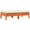 Repose-pieds de jardin avec coussins 2 pcs bois massif pinCes repose-pieds de jardin en bois avec coussins constitueront un excellent complément à votre jardin, terrasse ou patio pour discuter avec la famille et les amis ou simplement profiter du temps. Bois de pin massif : le bois de pin massif est un matériau naturel magnifique. Le bois de pin a un grain droit et les noeuds donnent au matériau son aspect caractéristique et rustique. Fabriqué en bois de pin massif, ce repose-pieds d'extérieur est durable et stable. Expérience d'assise confortable : le coussin bien rembourré rend le pouf de palette plus confortable pour y s'asseoir. Utilisation polyvalente : ce pouf d'extérieur peut non seulement être utilisé pour s'asseoir ou se détendre, mais il peut également être utilisé comme table basse pour contenir vos boissons, votre nourriture et d'autres décorations. Conception à lattes : la conception à lattes du pouf de jardin empêche efficacement l'eau de s'accumuler, ce qui garantit que l'assise reste sèche et exempte de tout risque de pourriture. Conception modulaire : ce pouf de terrasse présente une conception modulaire, ce qui le rend complètement flexible et facile à déplacer pour s'adapter à n'importe quel environnement. Vous pouvez le combiner avec d'autres segments modulaires disponibles dans le menu déroulant pour créer vos propres configurations d'ensemble de salon de jardin personnelles ! Bon à savoir : Pour que vos meubles d'extérieur restent beaux, nous vous recommandons de les protéger avec une housse imperméable. Maximum 110 kg par siège. Soyez conscient du risque de feux ouverts et d'autres sources de forte chaleur à proximité du produit. ,