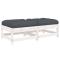 Repose-pieds de jardin coussins lot de 2 blanc bois pin massifCes repose-pieds de jardin en bois, qui se démarquent par leur design à lattes et leurs coussins moelleux, seront un excellent supplément à votre jardin, patio ou terrasse pour profiter d'un moment agréable avec votre famille ou vos amis. Bois de pin massif : le bois de pin massif est un matériau naturel magnifique. Le bois de pin a un grain droit et les noeuds donnent au matériau son aspect caractéristique et rustique. Cadre robuste et stable : le cadre en bois rend le repose-pied robuste et stable pour une utilisation quotidienne à l'extérieur. Coussin souple : le coussin d'assise bien rembourré de ce repose-pied apporte le plus grand confort. Conception modulaire : le repose-pied d'extérieur est flexible et facile à déplacer, vous pouvez le combiner avec d'autres segments modulaires dans la boutique en ligne pour créer vos propres configurations d'ensemble de salon de jardin ! Bon à savoir : Pour que vos meubles d'extérieur restent beaux, nous vous recommandons de les protéger avec une housse imperméable. Maximum 110 kg par siège. ,