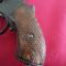 Revolver buldog ancien poudre noire calibre 7mm ,état moyen plaquette gauche et droite avec des petits manques, tous les ressorts sont présents et très ferme simple etdouble détente , un bon nettoyage est nécessaire,poids 300grs environ ! J’ai voulu le bronzer avec le produit ( photo)