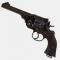Revolver Army & Navy Webley WG Army Cal. 455, bronzage 70% patiné bleu/brun, plaquettes d'origine assorties, mécanisme bon en simple/double action, canon miroir rayures profondes.