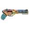 Ce revolver révolutionnaire présente la particularité d'avoir le canon dans l'axe de la chambre la plus basse du barillet et non de la chambre supérieure, comme sur les revolvers traditionnels.