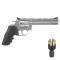 CARACTÉRISTIQUES : Dan Wesson 715 : ingénierie de précision impressionnante, adhérence parfaite et sensation de solidité. Canon lourd monobloc, possibilité de monter des accessoires optiques, poignée en caoutchouc imitation Hogue®, somme de caractéristiques qui invitent tous les membres de la nouvelle série de revolvers Dan Wesson 715 dans les meilleurs revolvers du marché. La série est disponible en 3 tailles de canon, 6, 4 et 2,5 pouces et avec deux finitions, à la fois très élégantes et saisissantes : le classique acier argenté et gris acier. Les modèles à canon rayé, conçus pour être utilisés avec de la grenaille de plomb, fourniront des résultats de précision difficiles à imaginer auparavant. De plus, la cartouche est alimentée par l'arrière, il n'est pas nécessaire de retirer les cartouches pour recharger. CARACTERISTIQUES : -Longueur : 298 mm. - Longueur du canon : 140 mm. - Capacité du chargeur : 6 coups. - Référence du chargeur : ASG16187. - Vitesse de sortie : 130 ms / 430 fps. -Poids : 1225gr. -Énergie : 3,0 joules.