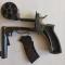 il est gravé "Galand" du côté gauche et le levier sur la droite ( ouvrir à fond pour ne pas abîmer) permet de sortir le barillet, pour recharger. Bien remettre en place le levier, sinon on ne peut pas armer ( sécurité).