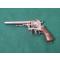 Revolver Liégois Victor Collette ( 1873 ), carcasse decorée de motifs vegetalistes quelque oxydation passée maintenaint nettoyée, capacité 6 coups en simple et double action calibre 9mm. Inscription du modèle et marquage de la Maison Victor Collette * á Liége, sur le cannon " Cast Steel Screwel Barrel" . le numero " 3645 "Mécanisme complet et fonctionnel , sans entre fer excessif à la jonction du canon et du barillet,. Plaquettes de crosse en noyer trés usagées sans accident.Au barillet " Central Fire 380 bore with self action safety Patent Dec. 11, 1873" .Aussi ELG en oval et " K " Couronnée.Aussi V.C. VICTOR cOLLETTE du cotê droite.Au interieur de la poignée " PCE 9 " .