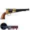 Son canon court de 8" offre une prise en main équilibrée et un style unique, idéal pour les collectionneurs et passionnés de reconstitution historique. Chambré en calibre .44 percussion, il est parfaitement adapté au tir à poudre noire et à la collection d'armes anciennes.