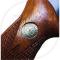 Matière / Finition : Carcasse en acier bronzé, crosse bois quadrillé avec insert logo
