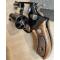 Matière / Finition : Alliage léger (carcasse), barillet et canon acier, finition bronzée - Crosse bois