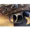 Modèle fabriqué de 1895 à 1909. Cet exemplaire a une finition bronzée d'origine présente à 100%. Canon de 3" à l'intérieur neuf. Excellent verrouillage. Plaquettes de crosse en caoutchouc noir avec monogramme Smith & Wesson. A part une très légère marque d'oxydation sur le côté gauche du canon (visible sur une des photos-, ce revolver est comme neuf.