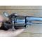 bonne percussion en double action mais le chien ne tient pas en simple action. Le barillet ne tourne pas. N'a pas de jeu particulier mais a besoin d'une complète révision. Poignée en bois d'époque, plutôt bon état, carcasse, barillet, chien et canon piqué. Guidon absent, petite porte pour mettre les munitions dans le barillet ne se bloque pas.