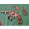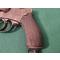 Revolver réglementaire Portugais, "Abadie", modèle 1878 pour Officier. Trés oxydée mais nettoyée, funtione trés bien , marques on disparu. Reste le numero " 2830" et un " R " , qui se repete. Tambour à six chambres, Systeme / Abadie / Breveté ( punction efacée á la droite de la carcasse) fabriquée par L. Soleil / Liége. Manque le button de fixation du axe. Plaquettes de crosse en bois, ( une crack et fissure ´consolidée á la droite et neuf á la gauche.). Pour initier une collection.