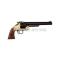Reproduction parfaite du "pistolet Smith Wesson USA 1869", en bois véritable, canon en métal noir et corps en or, fidèle à l'original, aussi bien dans le créateur que dans le mécanisme mais complètement inerte, grand 36 cm, pour présentation et collection.