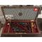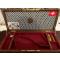 Aménagement refait avec drap de laine rouge, fonds de couvercle en drap de laine avec croix suisse.
