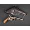 pistolet coup de poing voyage à balle forcée 12mm gravures enluminures bois noyer peinture noir