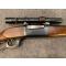 Mécanisme à levier de sous-garde, magasin rotatif capacité 5 coups, canon rond de 22" (56 cm) à l'intérieur miroir. Beaux bois, poignée pistolet. Fabrication de 1939 d'après le numéro de série. Dotée d'une lunette "vintage" en parfait état de fonctionnement marquée "El Paso, Texas, USA".