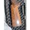 Le quadrillage fin et efficace sur des bois plutôt flatteurs pour du grade 1, bien fini, visuellement agréable magnifiés par une cannonerie au bronzage noir profond agrémenté de petites gravure ET surmonté d'un monumental guidon rouge pétard transfuge du cousin Perazzi. Esprit taquin chez RIZZINI.