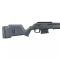 La crosse Magpul Hunter, conçue en polymère renforcé, confère à l’ensemble une ergonomie supérieure. Elle intègre un busc généreux et une plaque de couche réglable en longueur via des intercalaires fournis, pour un ajustement précis à la morphologie du tireur. L’alimentation est assurée par des chargeurs Magpul PMAG AICS de 5 coups, fiables et robustes.