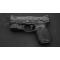 Rail standard picatiny. Organes de visée 3 points blancs. Sûreté ambidextre.