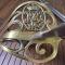 Monture laiton ouvragée, garde dites «gothique» au monogramme de Victoria VR, Victoria Regina. Fusé bois recouverte de cuir et filigranée cuivre torsadée.