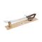 Sabre à champagne par C. DOZORME, lame 34 cm inox, manche palissandre, monture bronze, sur socle hêtre.