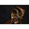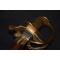 Monture à trois branches en laiton cuivré, à décors de feuillages. Pommeau à longue queue à décors de palmettes.