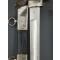 Sabre réglementaire de Dragon modèle An IV, vers 1796 jusqu'à l'Empire 1804. Monture à couvre chape entièrement en fer, caractérisée par un ornement circulaire figurant deux fers de haches adossés (rappel probable des dragons porteurs d'outils dont la hache), poignée gainée de cuir à filigrane de fer non torsadé. Traces d'oxydation et patine sur les pièces métalliques bien homogène, traces de brasures d'origine sur la garde et la calotte assemblés en plusieurs parties. Lame nouvelle à dos plat marquée Klingenthal, pans creux longue de 975mm conforme au Dragons à pointe relevée, long talon de 50mm poinçonné au faisceau licteur ainsi que le poinçon AP des ateliers républicains de Paris utilisé de de 1794 à 1799, lame comme neuve sans usure particulière ni tache. Fourreau en cuir fort noirci, à bélières et garnitures fer.