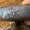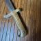 Garde et fusée en laiton monobloc, lame acier profile Yatagan à gouttière et simple tranchant dans sa patine .
