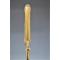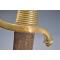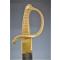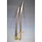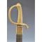 Garde en laiton dans sa patine non touchée, poignée à 36 torons, Ancre de Marine poinçonnée sur la croisière, quillon courbé en forme de bouton. Lame longue de 59cm usagée et épointée, large de 3.5cm, dans sa patine marron avec traces d'oxydation localisées, poinçonnée au talon d'une petite Ancre de Marine.Fourreau ancien rapporté en cuir noircit à deux garnitures laiton patinées. Rare sabre briquet de Marine modèle de l'An IX sous le Premier Empire, non démonté, sans jeu, fourreau